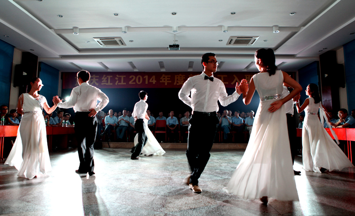 晚上7點整,隨著一陣激情澎湃的鼓聲拉開了晚會的序幕。小品《話說紅江》以講述的形式表現了公司新老員工對公司美好的祝福;舞蹈《青春華爾茲》充分展現了青年員工如朝陽般的青春活力;詩朗誦《鳳凰涅??》更是表現出新員工們步入紅江,對美好生活的向往……一個一個精彩紛呈的節目,贏得觀眾們陣陣掌聲。